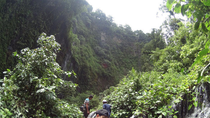 เวลาเก้าโมง, เราถึงจุดจอดรถของตัวน้ำตก… ทีนี่มีห้องน้ำให้เปลี่ยนเสื้อผ้า เมื่อจัดการเตรียมอุปกรณ์กันเรียบร้อย เราก็เดินลงไปตามทาง ผ่านสวนสละ (อร่อยมาก) จนมาถึงจุดชมวิว Panorama… ที่จุดชมวิวจุดนี้ คุณจะเห็นน้ำตก Tumpak Sewu จากด้านบนแบบเต็มๆ ตา…