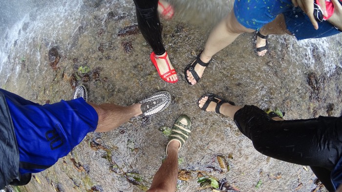 รองเท้าสีดำกับสีเขียว ซื้อมาจากจุดพักรถ (เพราะไม่ได้เตรียมา T-T) ไม่ลื่น แต่กัดเท้า… ส่วนแชมป์บอกรองเท้า keen รุ่น uneek (รองเท้าเชือกสีขาวในรูป) เวิร์กมากๆ… ลองหามาใส่กันดูได้เล้ยยย