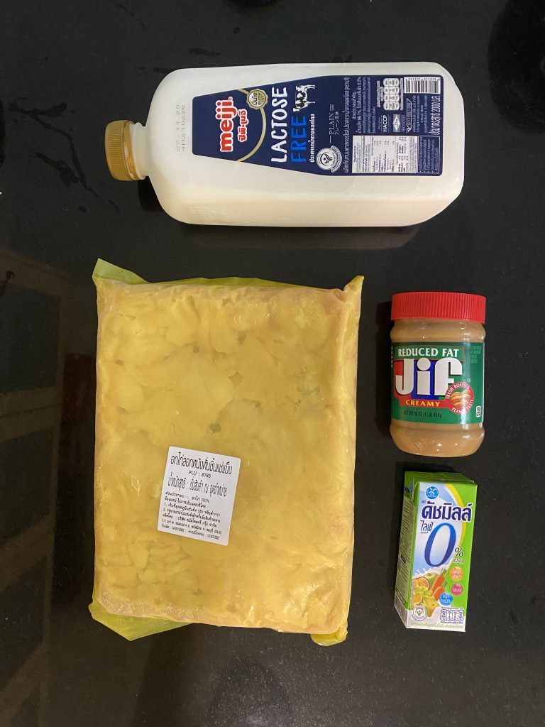 สัดส่วนวัตถุดิบด้านล่างนี้ สำหรับทำอกไก่ปั่น 2 แก้ว (1,000ml)