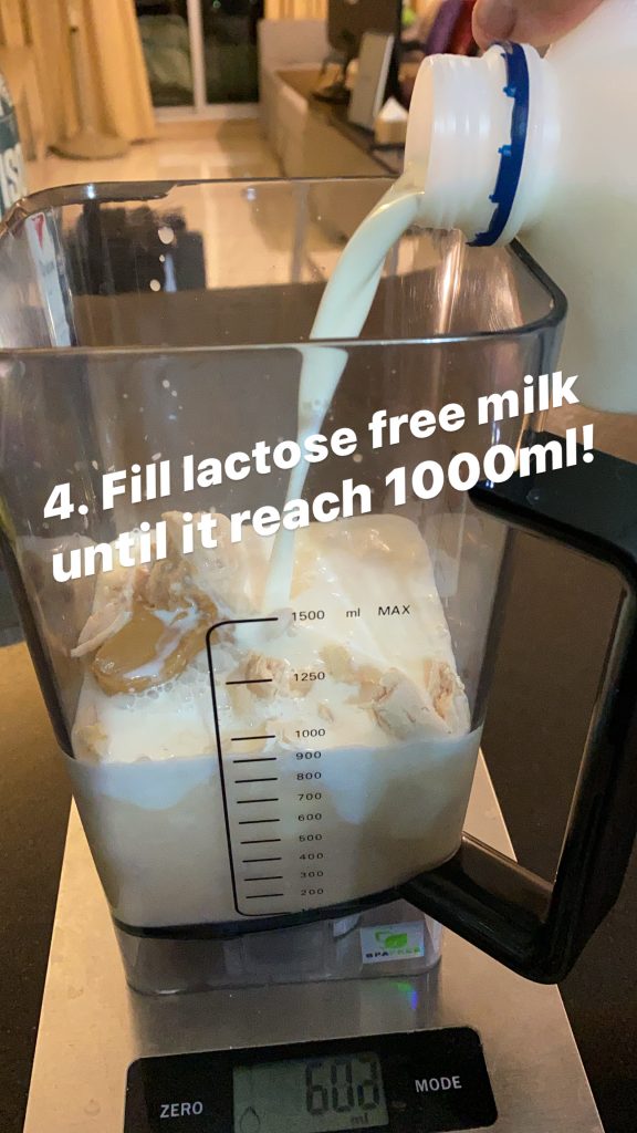 4. ใส่นมสด ไปจนครบ 1,000ml