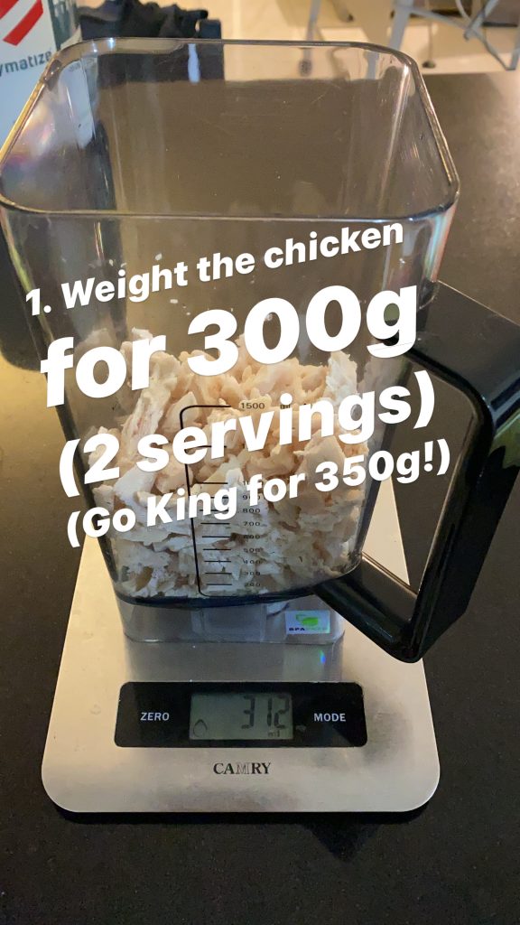 • อกไก่ชั่งสุก 300 กรัม (เพิ่มเป็น 350, 400 กรัม ได้)