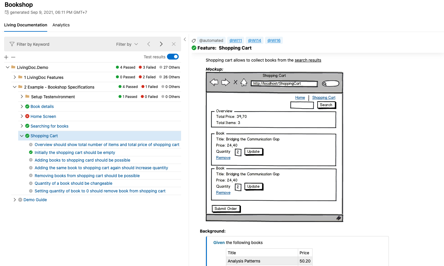 LivingDoc Demo: https://specflowoss.github.io/LivingDoc-Demo/BookShop.html#/document/Standalone/feature/f78656bac2b7f5a04acd33feeae5edd9