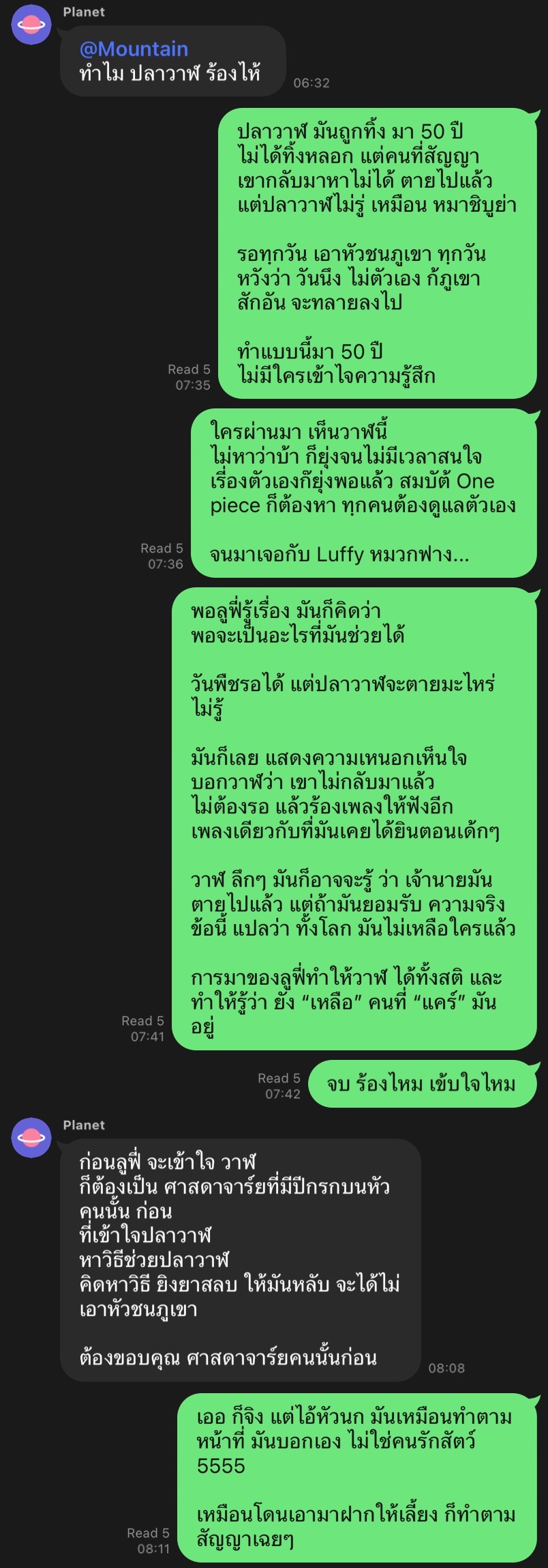พอลูฟี่รู้เรื่อง มันก็คิดว่า